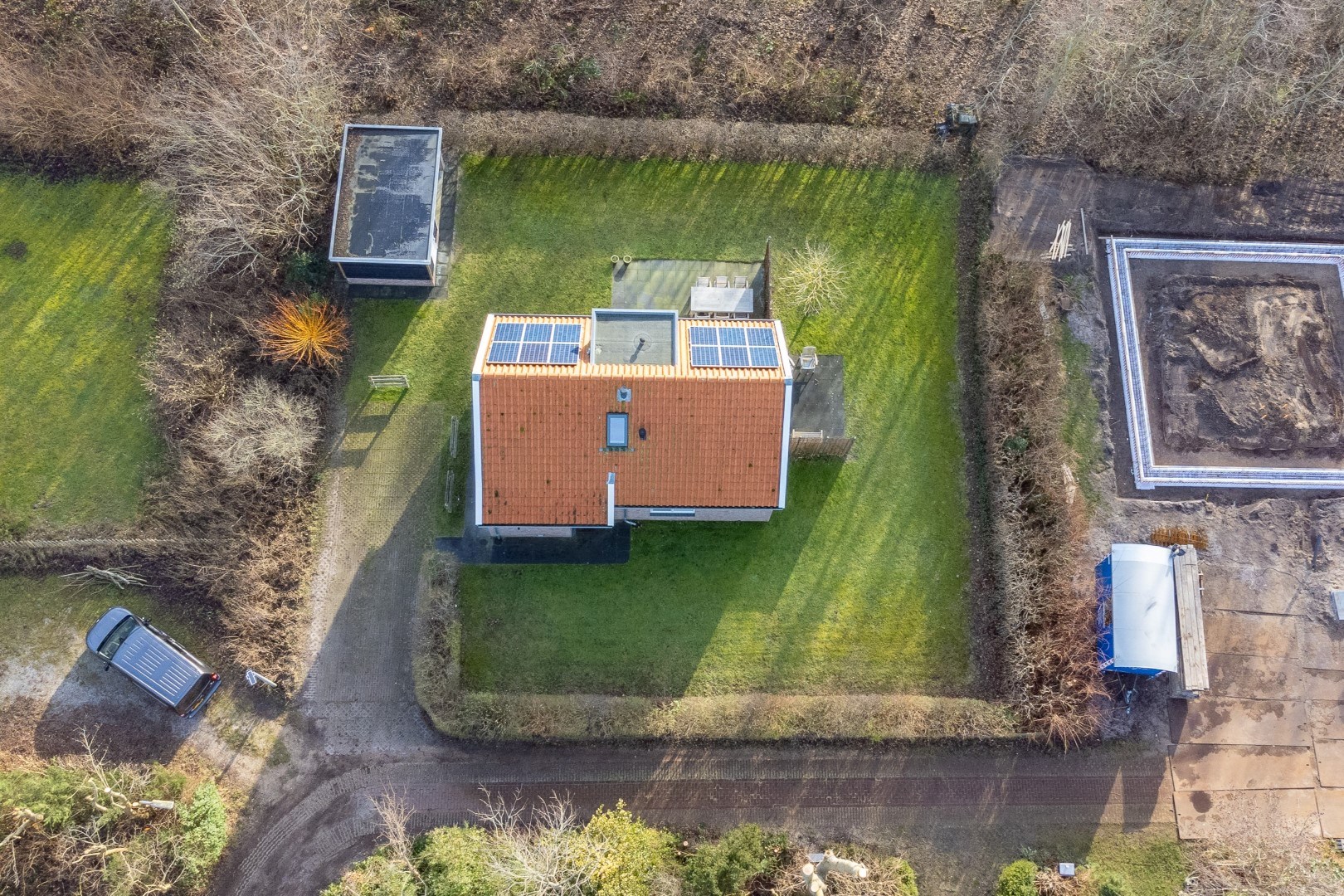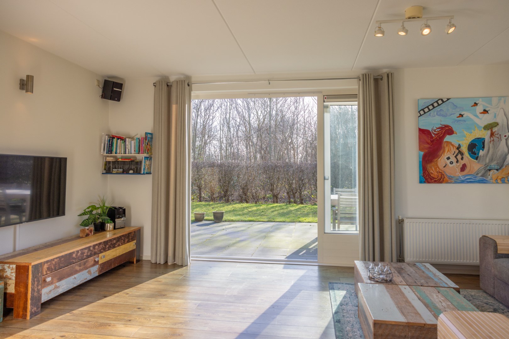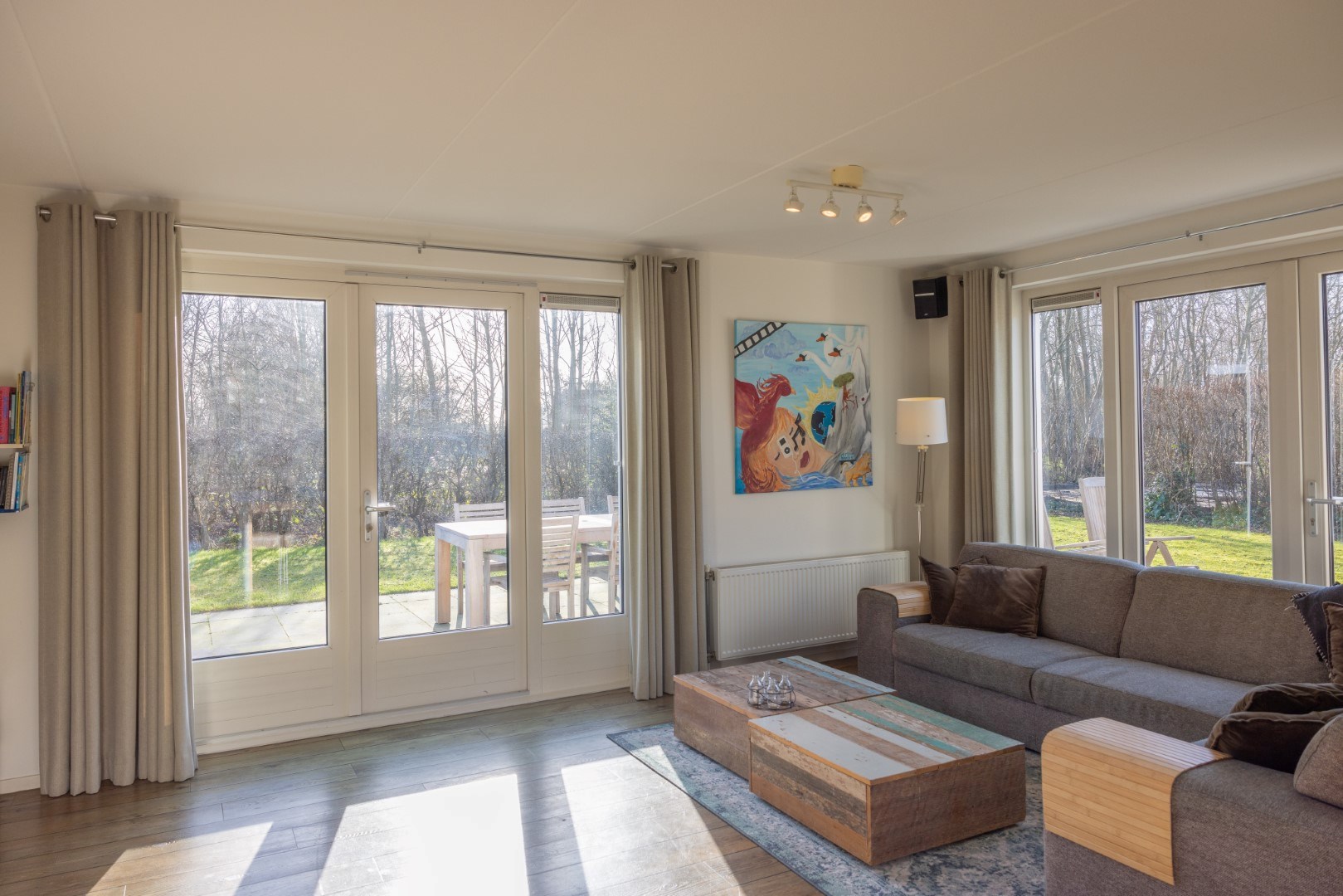 Goed onderhouden en onderhoudsvriendelijke recreatiewoning (2008) met berging, overkapping, en heerlijk omsingelde tuin: totaal 799 m² eigen grond.