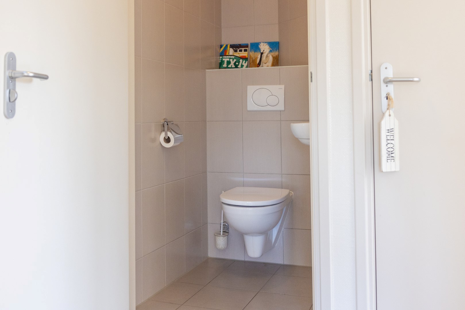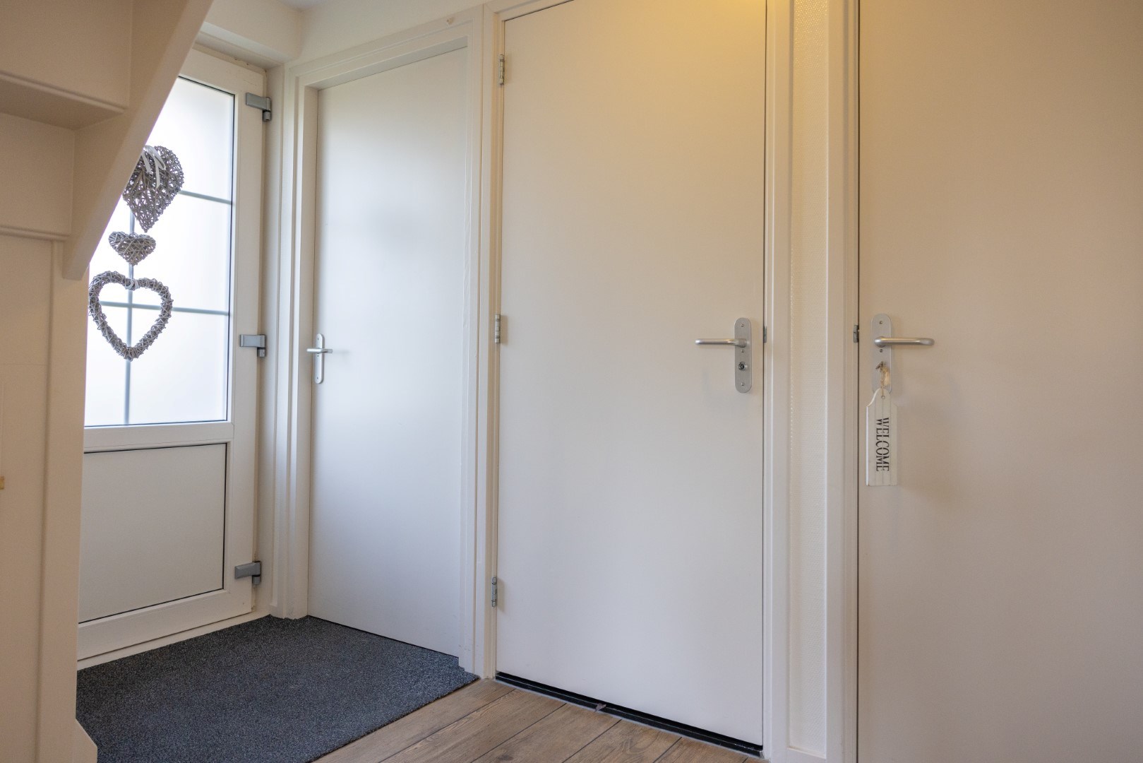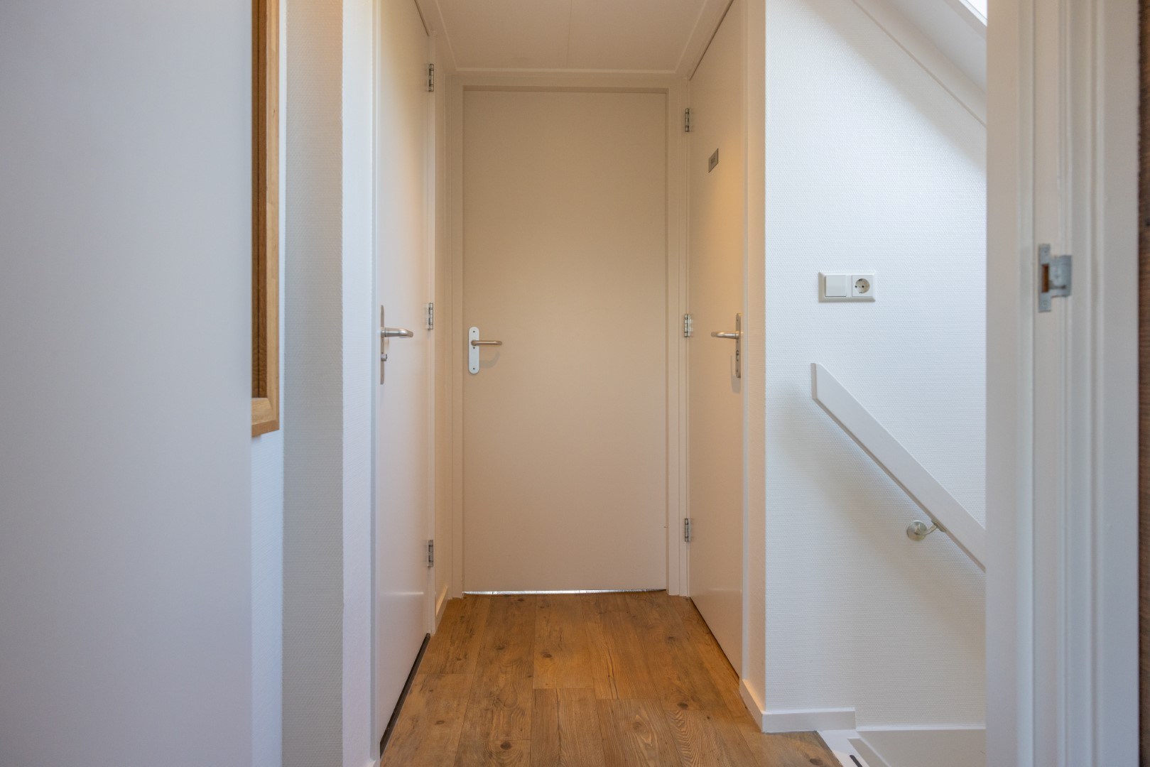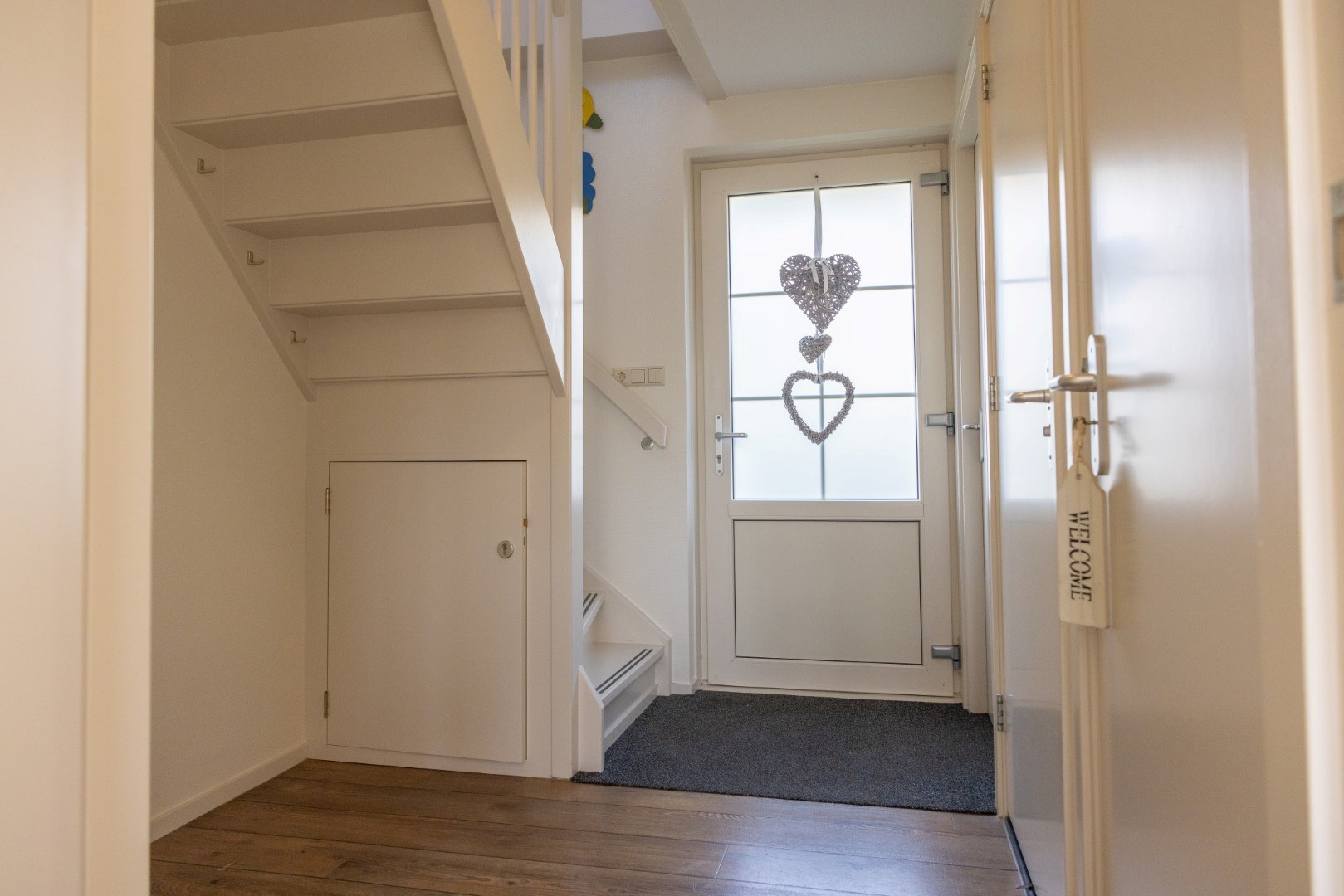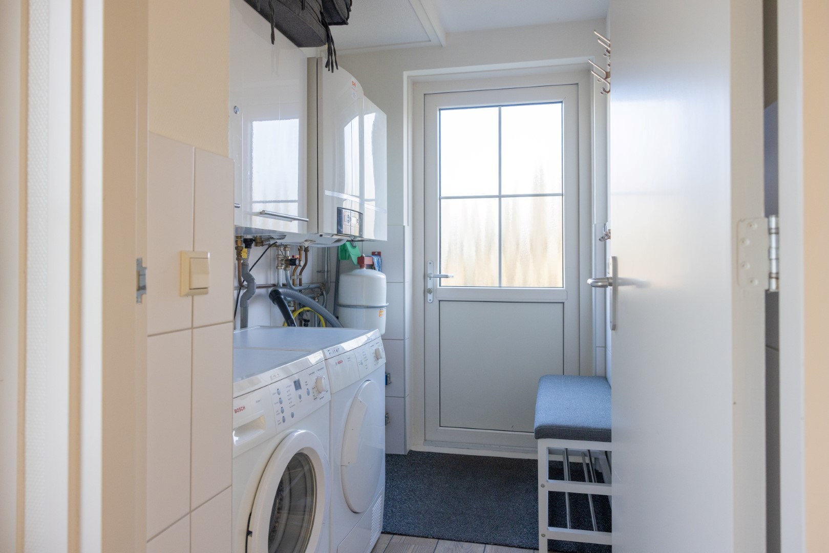 De woning heeft een hal/entree met trapopgang en meterkast, een toilet, en een bijkeuken. De bijkeuken is ook buitenom bereikbaar en biedt ruimte voor wasmachine, droger, en de CV-ketel. Er is een ruime slaapkamer beneden met practische schuifdeur naar de moderne badkamer.