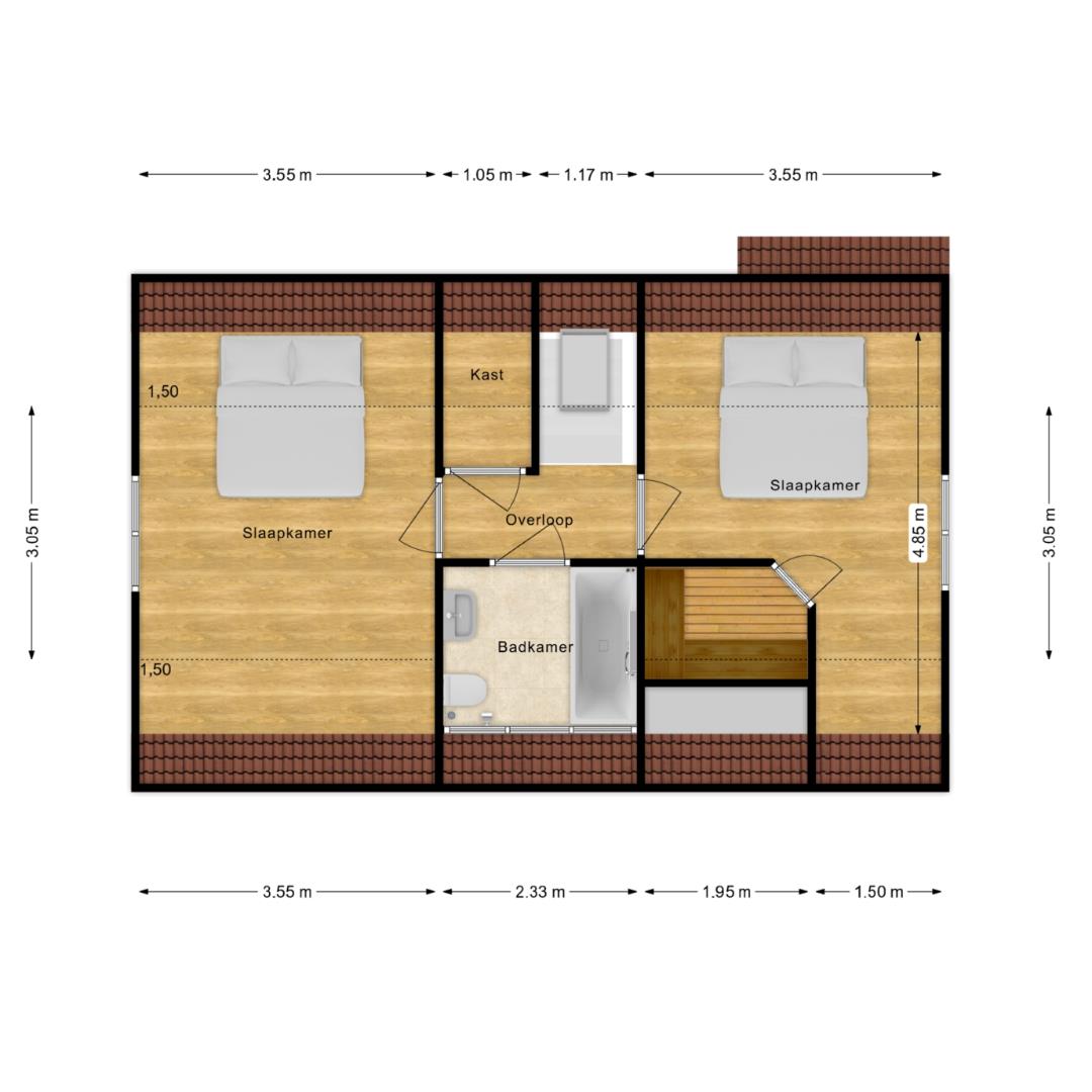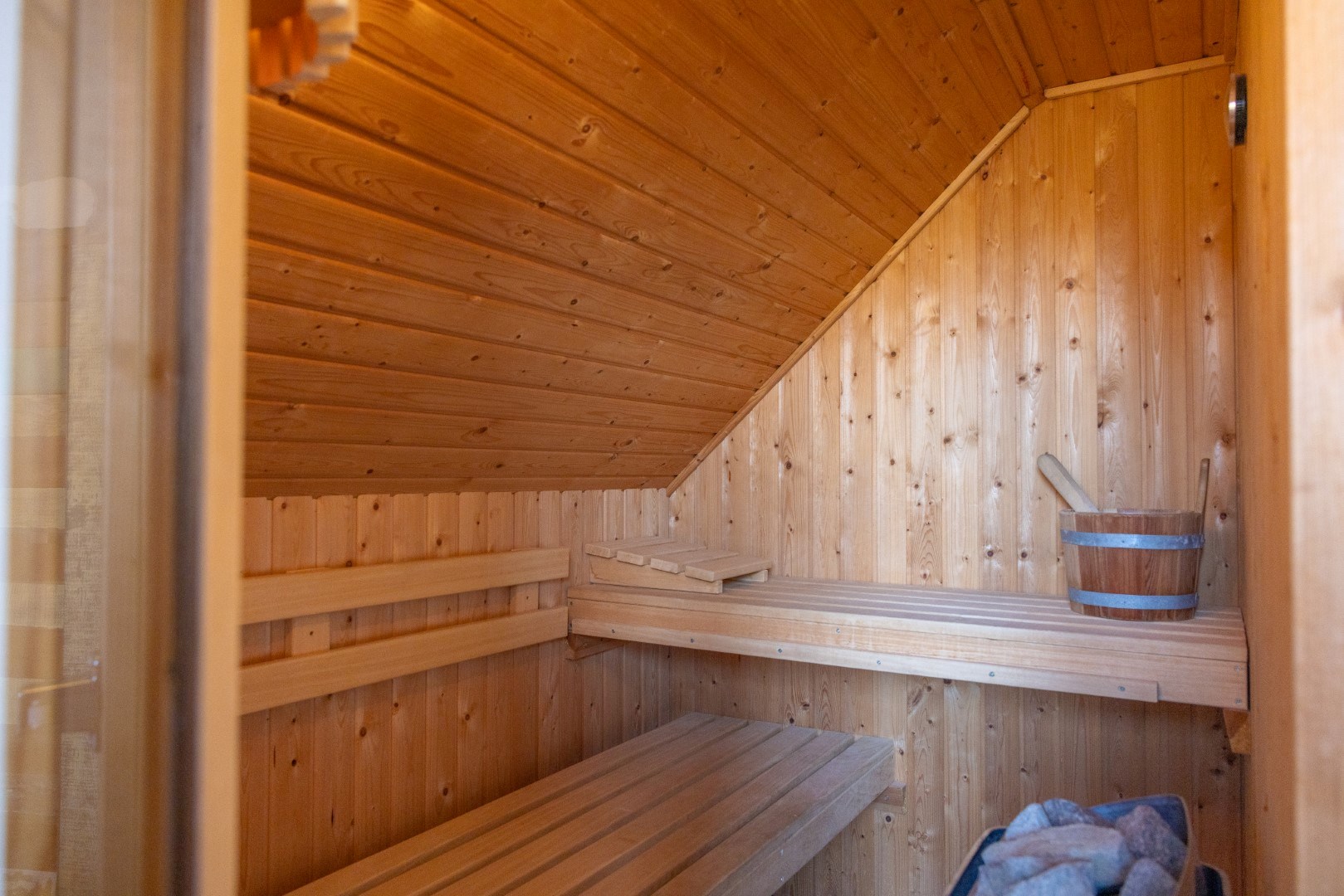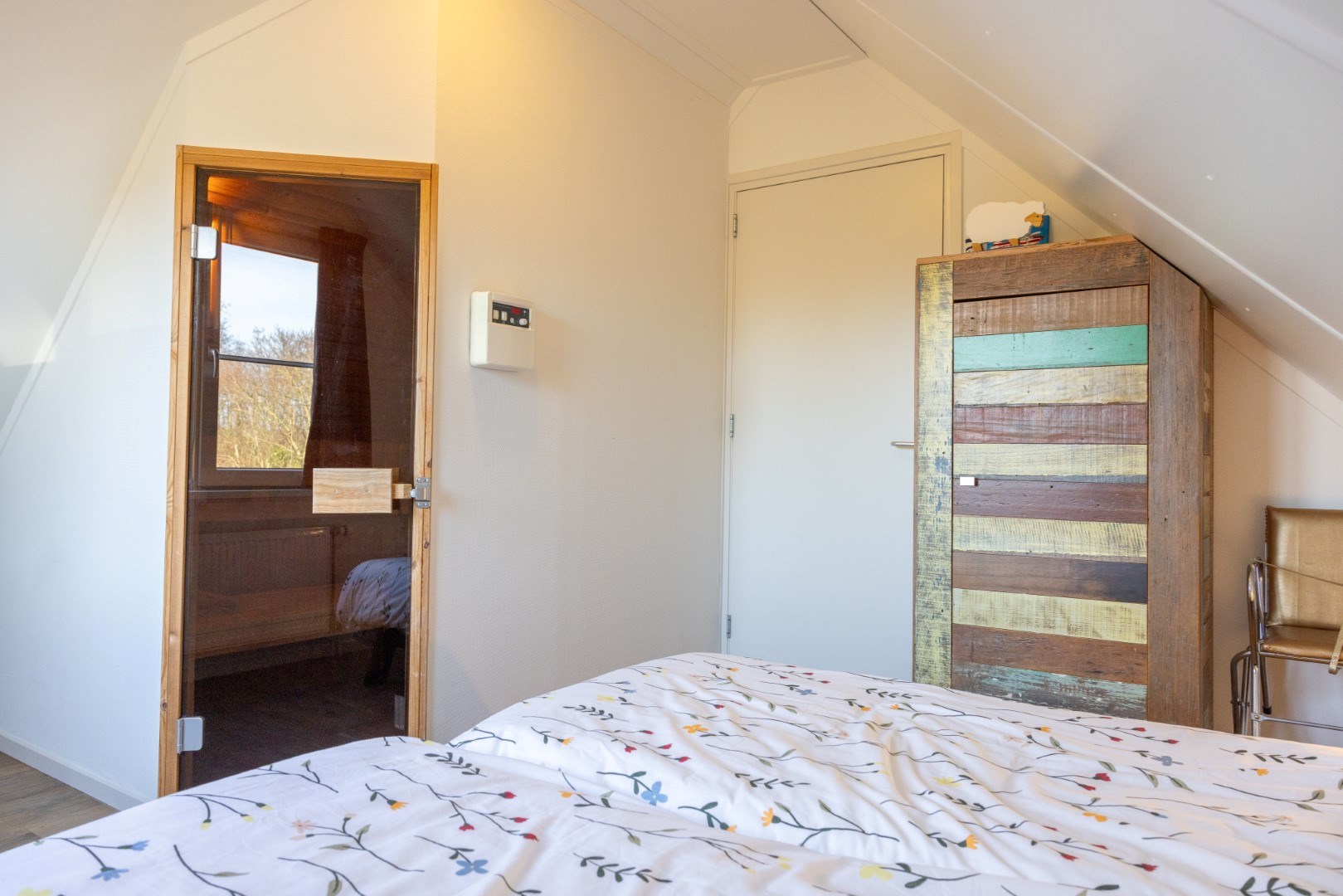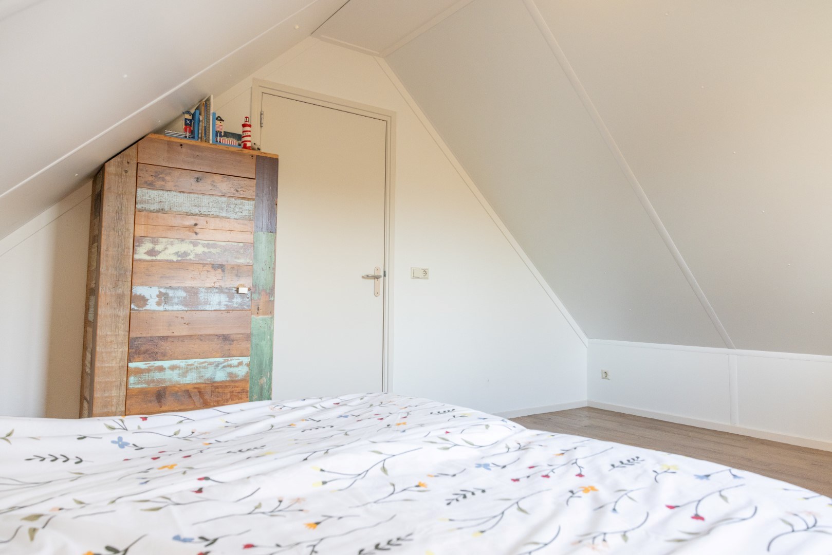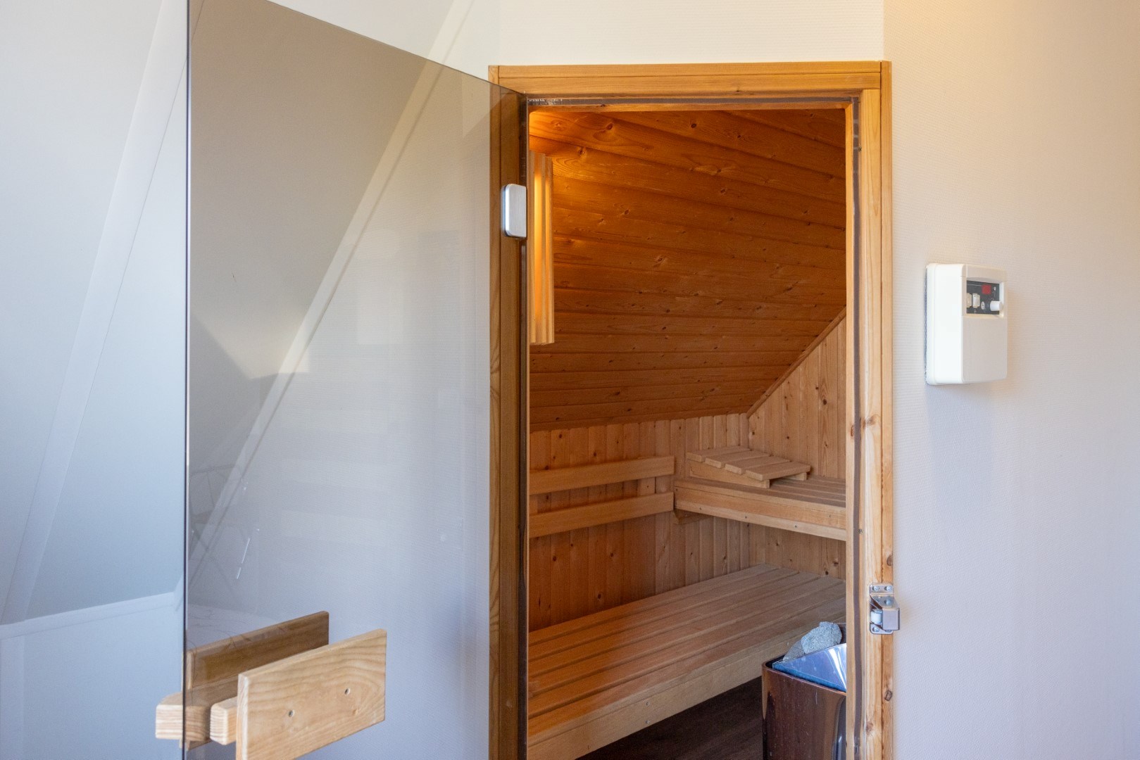 Op de verdieping een overloop met privé-kast, een moderne badkamer, en 2 ruime slaapkamers, waarvan een met sauna. De moderne badkamer is vergroot met dakkapel, heeft vloerverwarming, en is eveneens voorzien van een ligbad waarboven douche, een 2e toilet, en een wastafel.